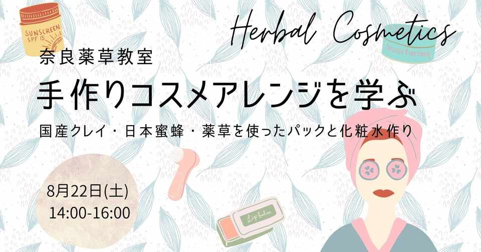 奈良薬草講座vol5 手作りコスメアレンジを学ぶ 国産クレイ はちみつ 薬草を使ったパックと化粧水作り 里山文庫 まえだちさと Note