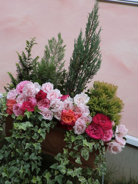 コニファーの寄せ植え ベランダ